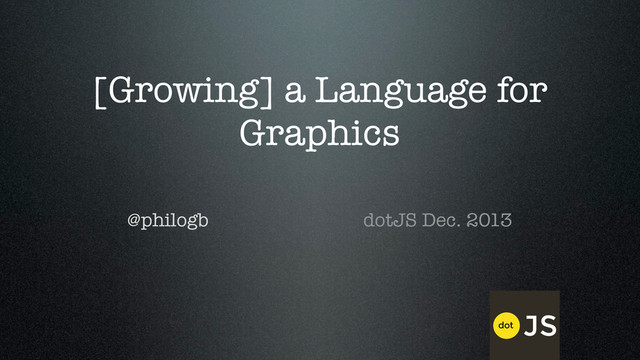 "Growing a Language for Graphics" is about JavaScript as seen from the eyes of a data visualization / graphics person. By having a look at GLSL - a domain specific language (DSL) for graphics used in WebGL - I talk about what language features would help graphic developers on the Web and I show the long history of trying to standardize operator overloading into JavaScript.