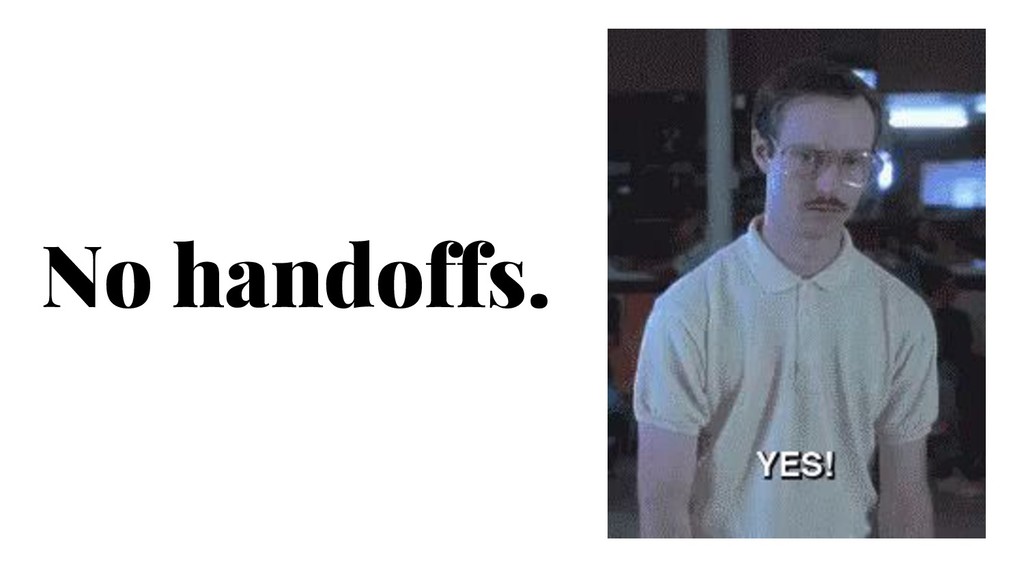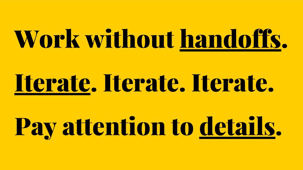 Work without handoffs. Iterate. Iterate. Iterate. Pay attention to details.