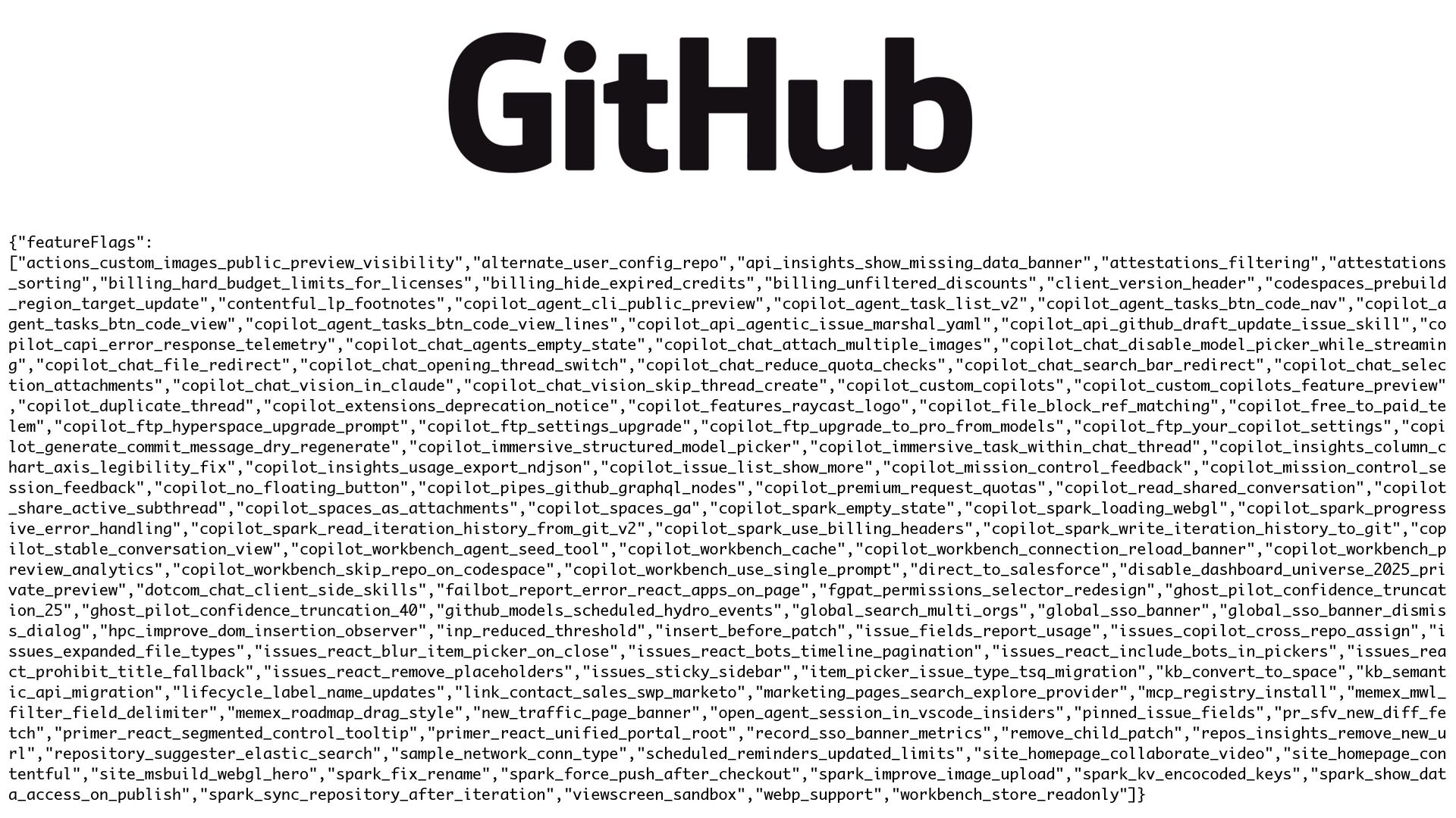 lot_generate_commit_message_dry_regenerate","copilot_immersive_structured_model_picker","copilot_immersive_task_within_chat_thread","copilot_insights_column_c hart_axis_legibility_fix","copilot_insights_usage_export_ndjson","copilot_issue_list_show_more","copilot_mission_control_feedback","copilot_mission_control_se ssion_feedback","copilot_no_floating_button","copilot_pipes_github_graphql_nodes","copilot_premium_request_quotas","copilot_read_shared_conversation","copilot _share_active_subthread","copilot_spaces_as_attachments","copilot_spaces_ga","copilot_spark_empty_state","copilot_spark_loading_webgl","copilot_spark_progress ive_error_handling","copilot_spark_read_iteration_history_from_git_v2","copilot_spark_use_billing_headers","copilot_spark_write_iteration_history_to_git","cop ilot_stable_conversation_view","copilot_workbench_agent_seed_tool","copilot_workbench_cache","copilot_workbench_connection_reload_banner","copilot_workbench_p review_analytics","copilot_workbench_skip_repo_on_codespace","copilot_workbench_use_single_prompt","direct_to_salesforce","disable_dashboard_universe_2025_pri vate_preview","dotcom_chat_client_side_skills","failbot_report_error_react_apps_on_page","fgpat_permissions_selector_redesign","ghost_pilot_confidence_truncat ion_25","ghost_pilot_confidence_truncation_40","github_models_scheduled_hydro_events","global_search_multi_orgs","global_sso_banner","global_sso_banner_dismis s_dialog","hpc_improve_dom_insertion_observer","inp_reduced_threshold","insert_before_patch","issue_fields_report_usage","issues_copilot_cross_repo_assign","i ssues_expanded_file_types","issues_react_blur_item_picker_on_close","issues_react_bots_timeline_pagination","issues_react_include_bots_in_pickers","issues_rea ct_prohibit_title_fallback","issues_react_remove_placeholders","issues_sticky_sidebar","item_picker_issue_type_tsq_migration","kb_convert_to_space","kb_semant ic_api_migration","lifecycle_label_name_updates","link_contact_sales_swp_marketo","marketing_pages_search_explore_provider","mcp_registry_install","memex_mwl_ filter_field_delimiter","memex_roadmap_drag_style","new_traffic_page_banner","open_agent_session_in_vscode_insiders","pinned_issue_fields","pr_sfv_new_diff_fe tch","primer_react_segmented_control_tooltip","primer_react_unified_portal_root","record_sso_banner_metrics","remove_child_patch","repos_insights_remove_new_u rl","repository_suggester_elastic_search","sample_network_conn_type","scheduled_reminders_updated_limits","site_homepage_collaborate_video","site_homepage_con tentful","site_msbuild_webgl_hero","spark_fix_rename","spark_force_push_after_checkout","spark_improve_image_upload","spark_kv_encocoded_keys","spark_show_dat a_access_on_publish","spark_sync_repository_after_iteration","viewscreen_sandbox","webp_support","workbench_store_readonly"]}