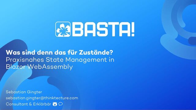 der Komponenten) ▪ Application State im Speicher ▪ Transiente & Semi-Persistente Daten ▪ Daten im Client und auf der Netzwerk-Ebene ▪ Persistenz = hauptsächlich Aufgabe des Backends 😉 Praxisnahes State Management in Blazor WebAssembly