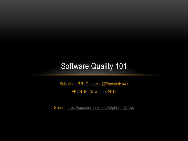 Full TDD (test first) for everything • 50% less defects - after 2 years • No mention on costs, though • Second link (study from IBM & MS) • Costs: Time only. 15% to 35% more • Gains: Bug ratio went down to 61% (and one product down to 9%!) November 2012 - EKON 16 Sebastian P.R. Gingter - @PhoenixHawk