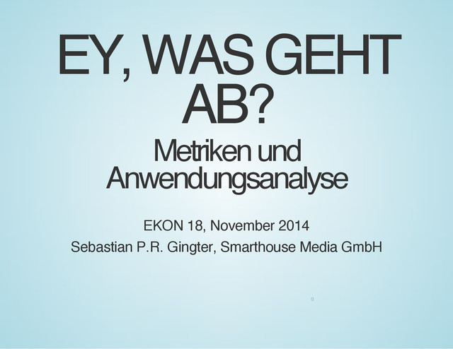werfen Log-Einträge 1:1 in ElasticSearch werfen in Echtzeit mit Kibana auswerten Aus Kibana Statistiken ermitteln (z.B. Anzahl Fehler/Zeit) Aus Statistiken Prognosen ermitteln und diese Monitoren Beispiel: Performance-Schwelle wird in X Tagen erreicht (Frühwarnsystem)