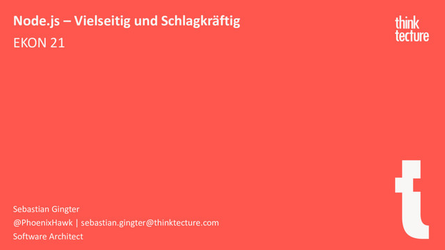Studio Code: https://code.visualstudio.com/ • Thinktecture: https://thinktecture.com/ • Repo zu dieser Session: https://github.com/thinktecture/ekon-2017-nodejs • Slides zu dieser Session: https://speakerdeck.com/phoenixhawk/ekon21-node-dot-js Node.js - Vielseitig und Schlagkräftig EKON 2017 Ressourcen / Links