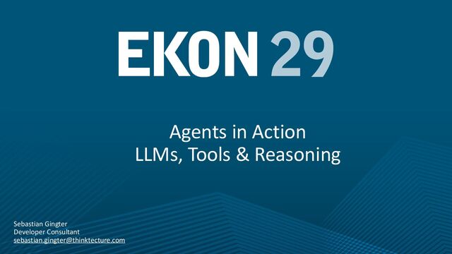 Productivity & Software Quality ▪ All things .NET ▪ Microsoft MVP for .NET & Azure AI Services ▪ [email protected] ▪ https://www.thinktecture.com Agents in Action LLMs, Tools & Reasoning Sebastian Gingter Developer Consultant @ Thinktecture AG