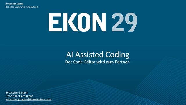 Productivity & Software Quality ▪ All things .NET ▪ Microsoft MVP for .NET & Azure AI Services ▪ [email protected] ▪ https://www.thinktecture.com Sebastian Gingter Developer Consultant @ Thinktecture AG Der Code-Editor wird zum Partner! AI Assisted Coding