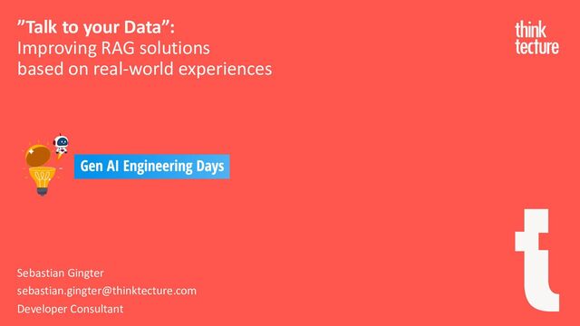 , -0.13498 , -0.08813 , 0.47377 , -0.61798 , -0.31012 , -0.076666, 1.493 , -0.034189, -0.98173 , 0.68229 , 0.81722 , -0.51874 , -0.31503 , -0.55809 , 0.66421 , 0.1961 , -0.13495 , -0.11476 , -0.30344 , 0.41177 , -2.223 , -1.0756 , -1.0783 , -0.34354 , 0.33505 , 1.9927 , -0.04234 , -0.64319 , 0.71125 , 0.49159 , 0.16754 , 0.34344 , -0.25663 , -0.8523 , 0.1661 , 0.40102 , 1.1685 , -1.0137 , -0.21585 , -0.15155 , 0.78321 , -0.91241 , -1.6106 , -0.64426 , -0.51042 ] Embedding-Model "Talk to your Data": Improving RAG solutions based on real-world experiences http://jalammar.github.io/illustrated-word2vec/