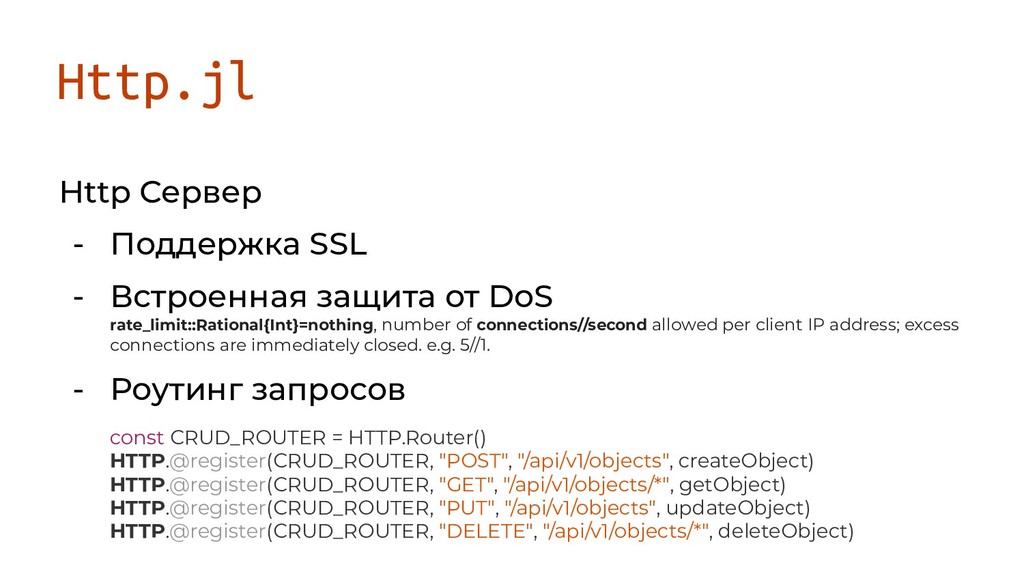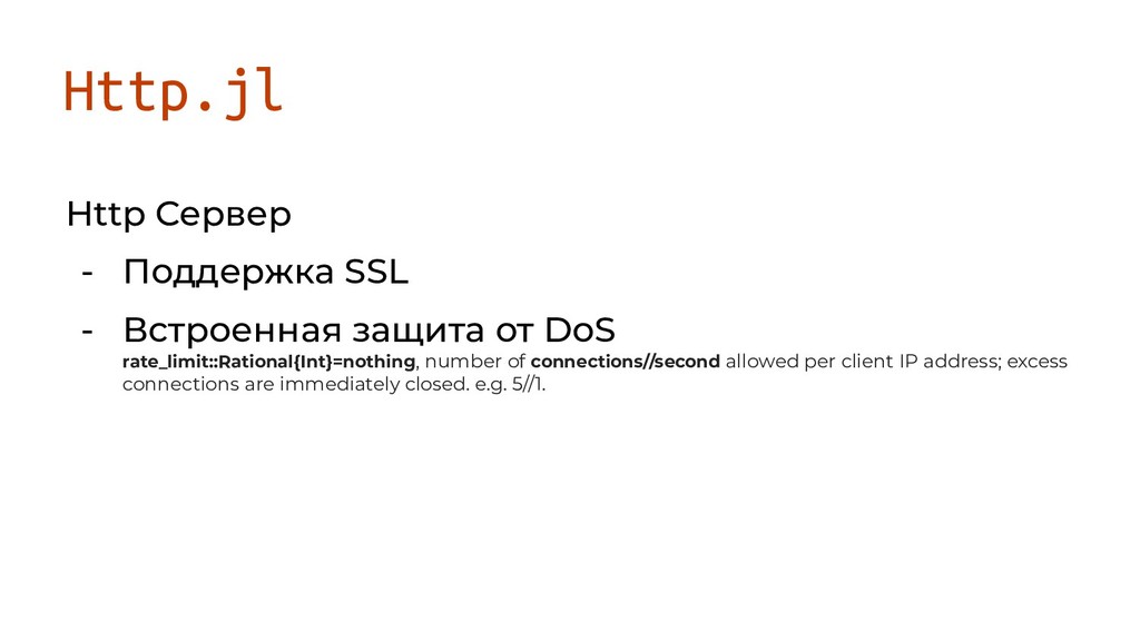 DoS rate_limit::Rational{Int}=nothing, number of connections//second allowed per client IP address; excess connections are immediately closed. e.g. 5//1.