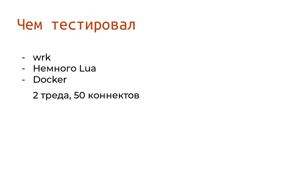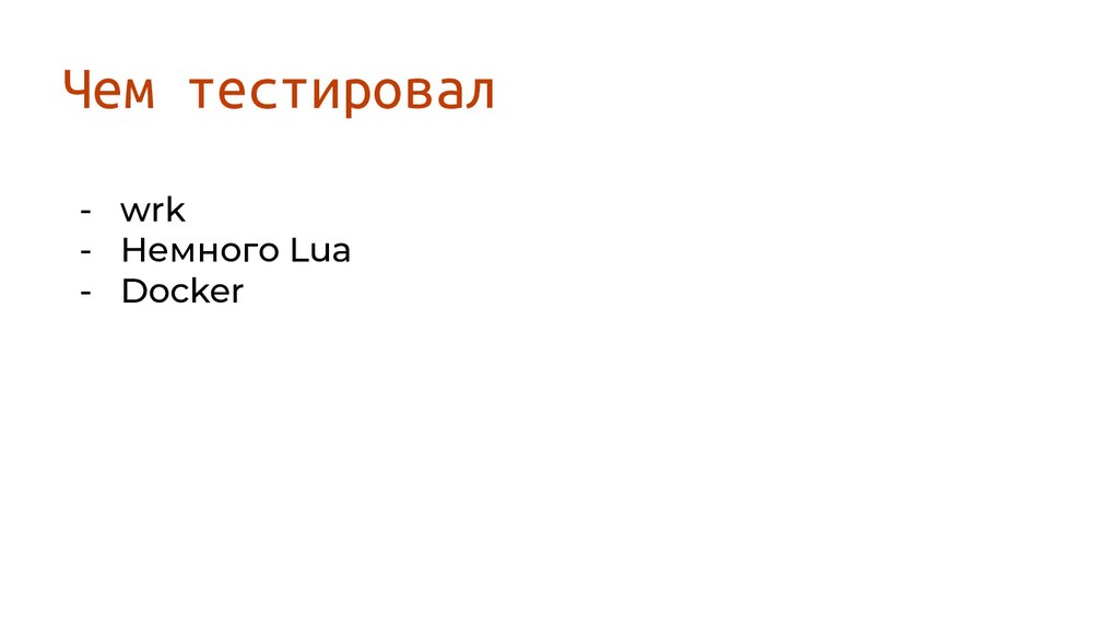 - wrk - Немного Lua - Docker Чем тестировал