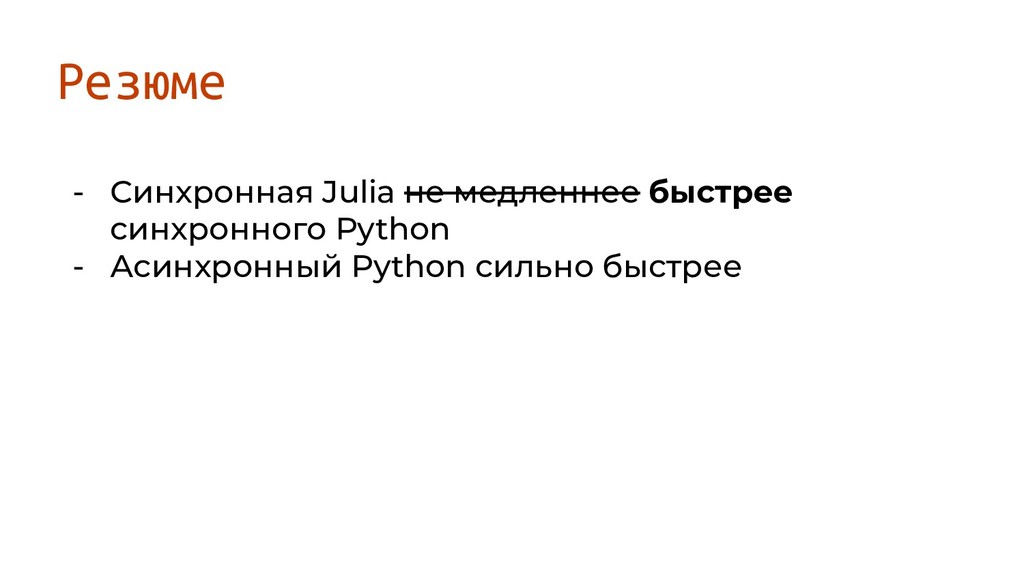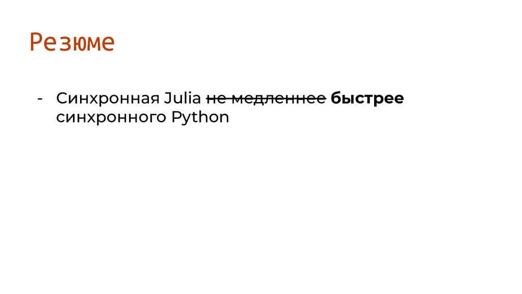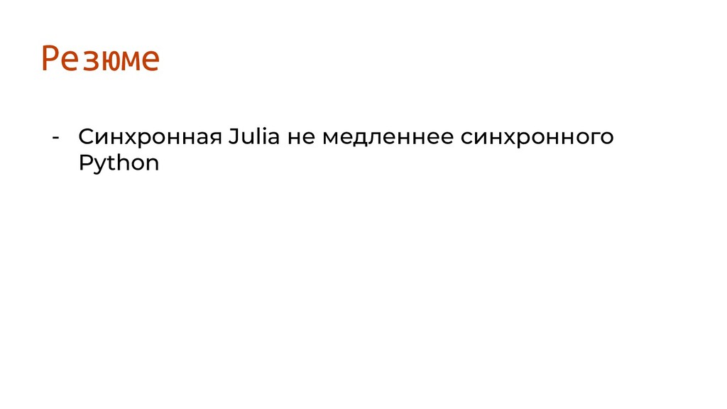 Резюме - Синхронная Julia не медленнее быстрее синхронного Python -