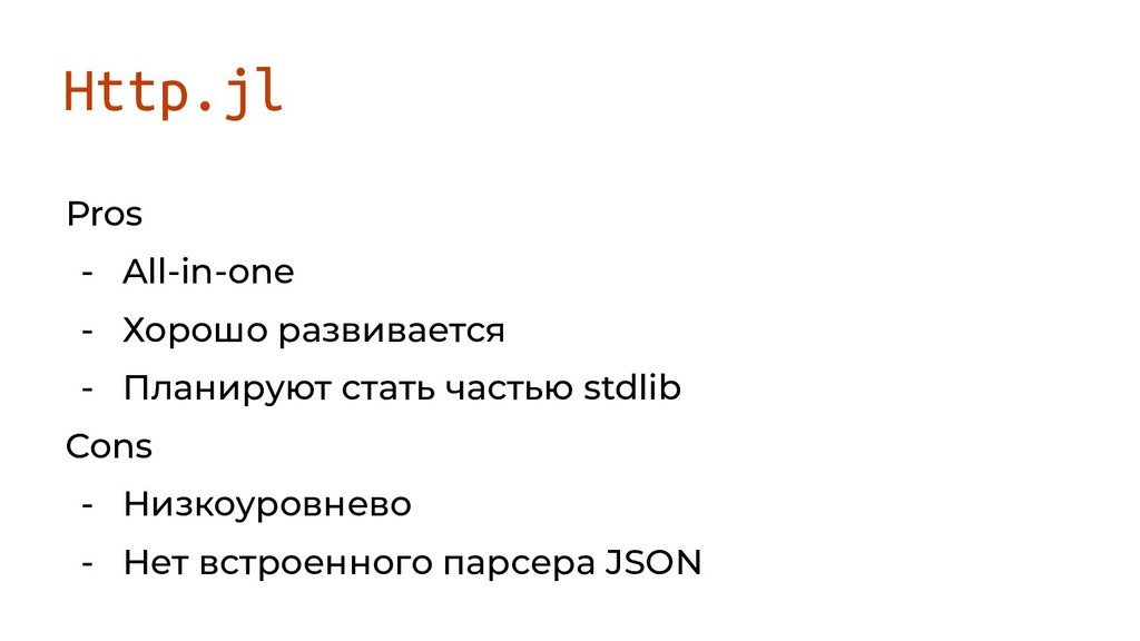 Http.jl Pros - All-in-one - Хорошо развивается - Планируют стать