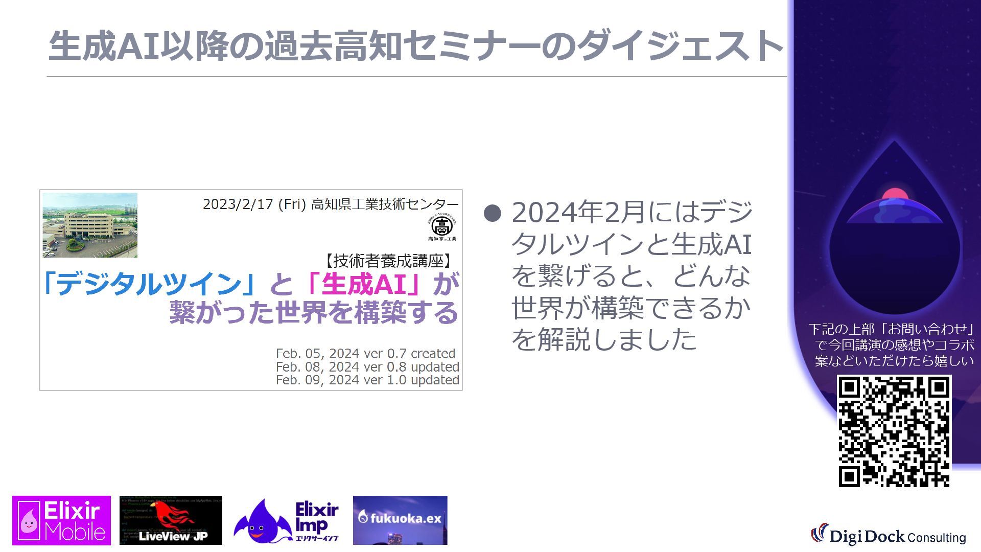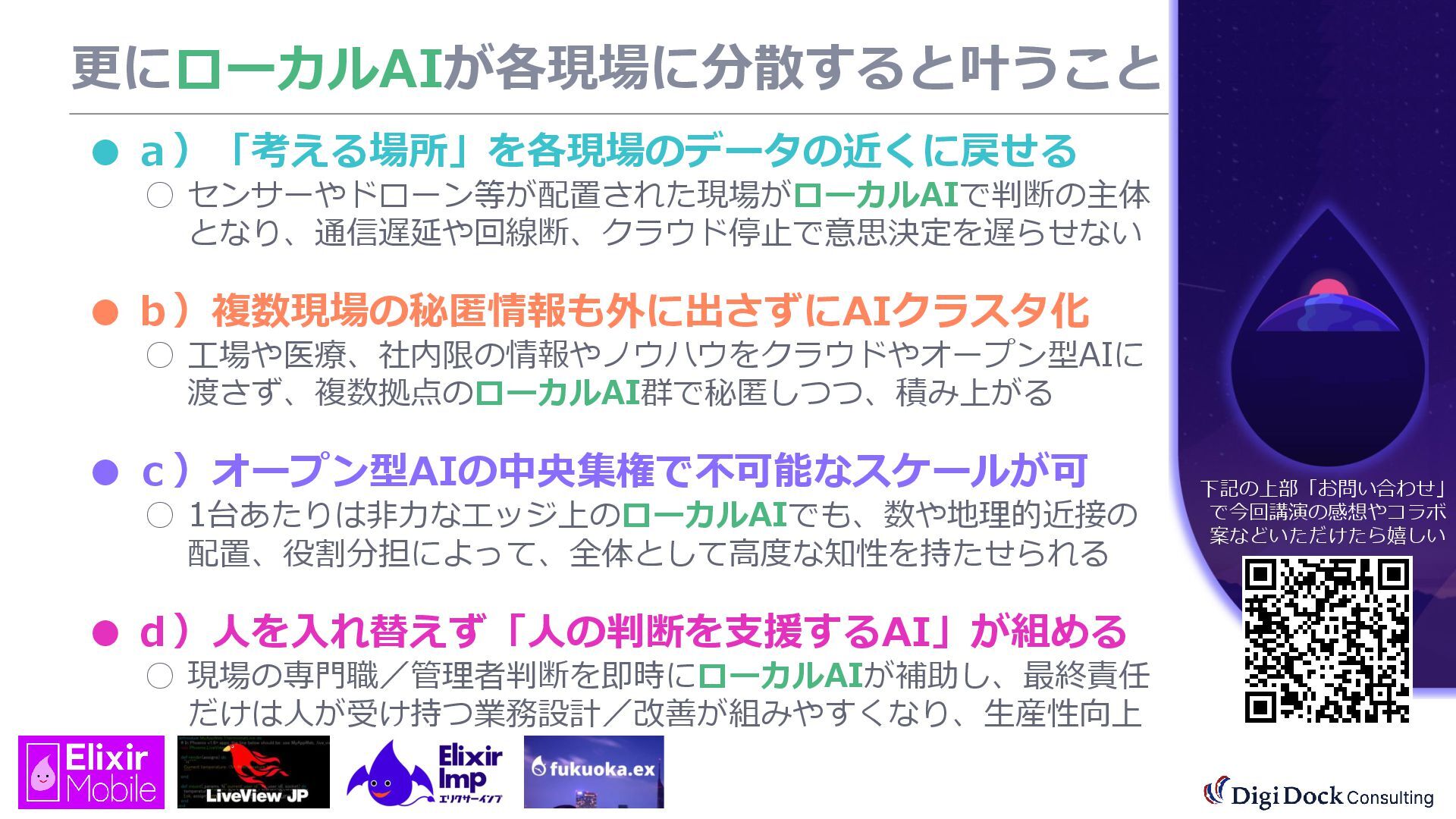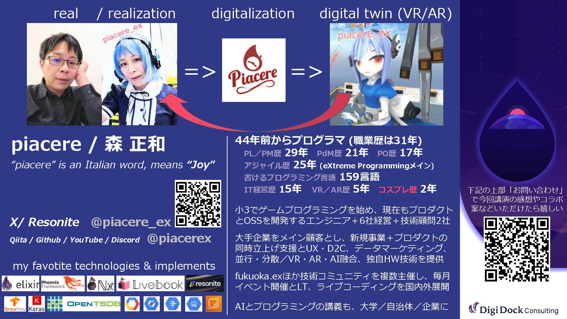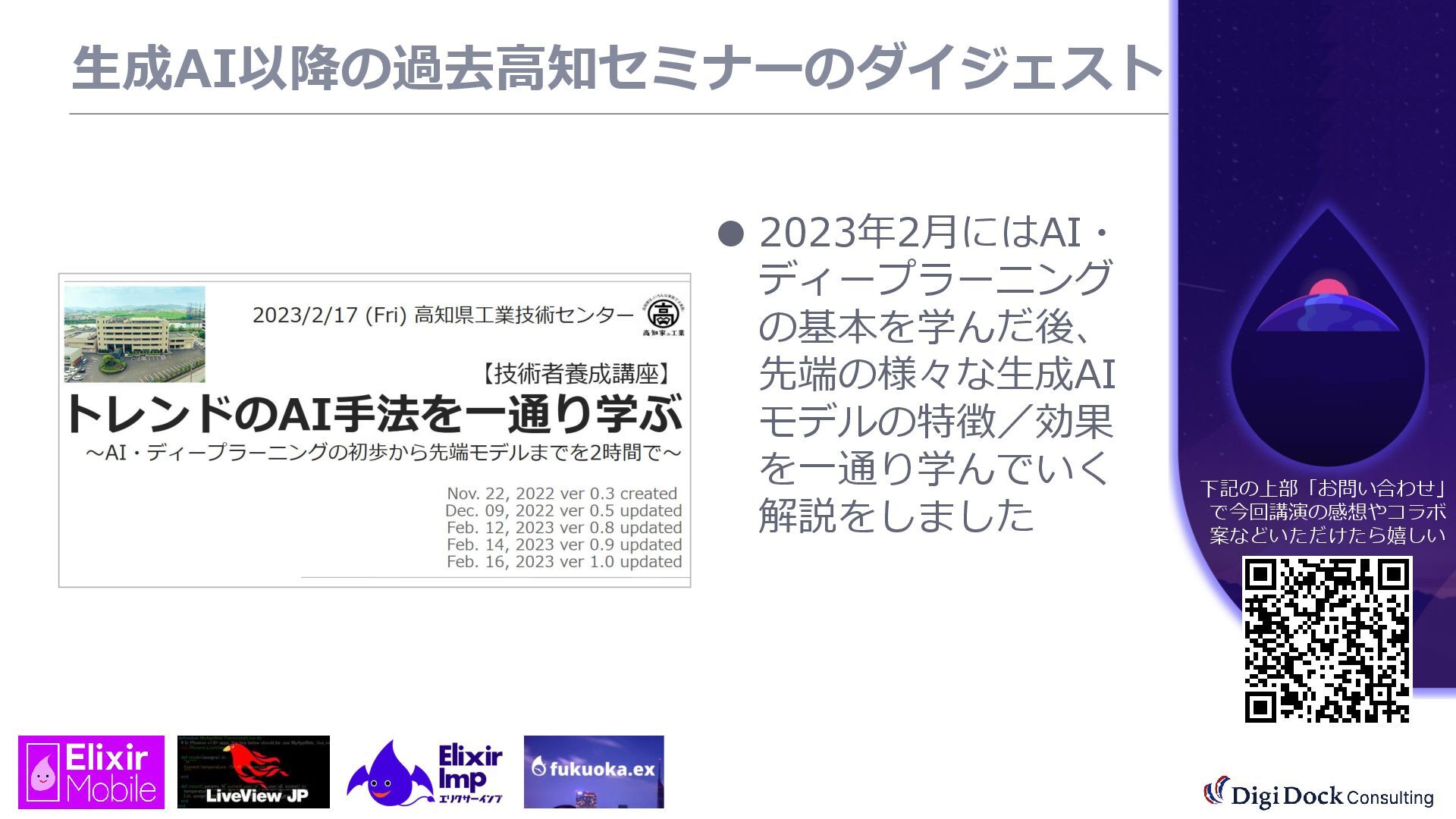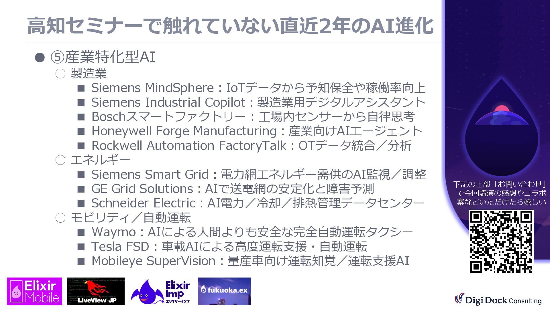 ver 0.1 created. Oct. 19, 2025 ver 0.5 updated Oct. 26, 2025 ver 0.7 updated Nov. 01, 2025 ver 0.8 updated Nov. 02, 2025 ver 0.9 updated Nov. 03, 2025 ver 1.0 updated Dec. 13, 2025 ver 1.5 updated Dec. 17, 2025 ver 2.0 updated 株式会社DigiDockConsulting 常務取締役CETOほか5社CxO Elixirコミュニティ「fukuoka.ex」「ElixirImp」「LiveView JP」オーガナイザ 国際カンファレンス「ElixirConf JP」ファウンダー 北九州市立大学 「プログラミング論」教授級非常勤講師 北九州高等専門学校 特命教授 / コンピュータ研究部 指導員 AIスクール「AIジョブカレ」福岡校開校講師 piacere / 森 正和 2025.12.19 Fri. 【スマートものづくり研究会】AIセミナー