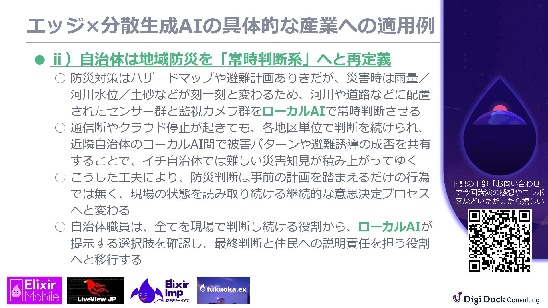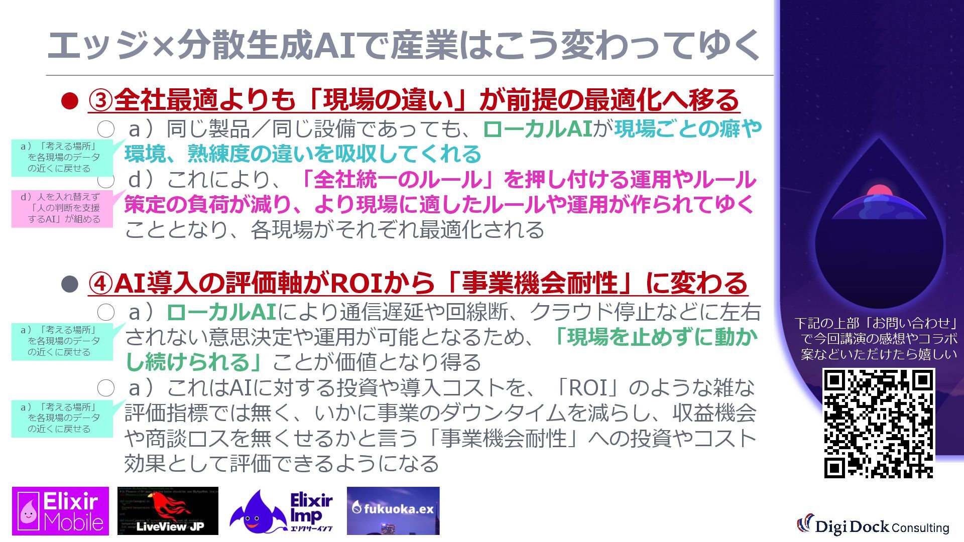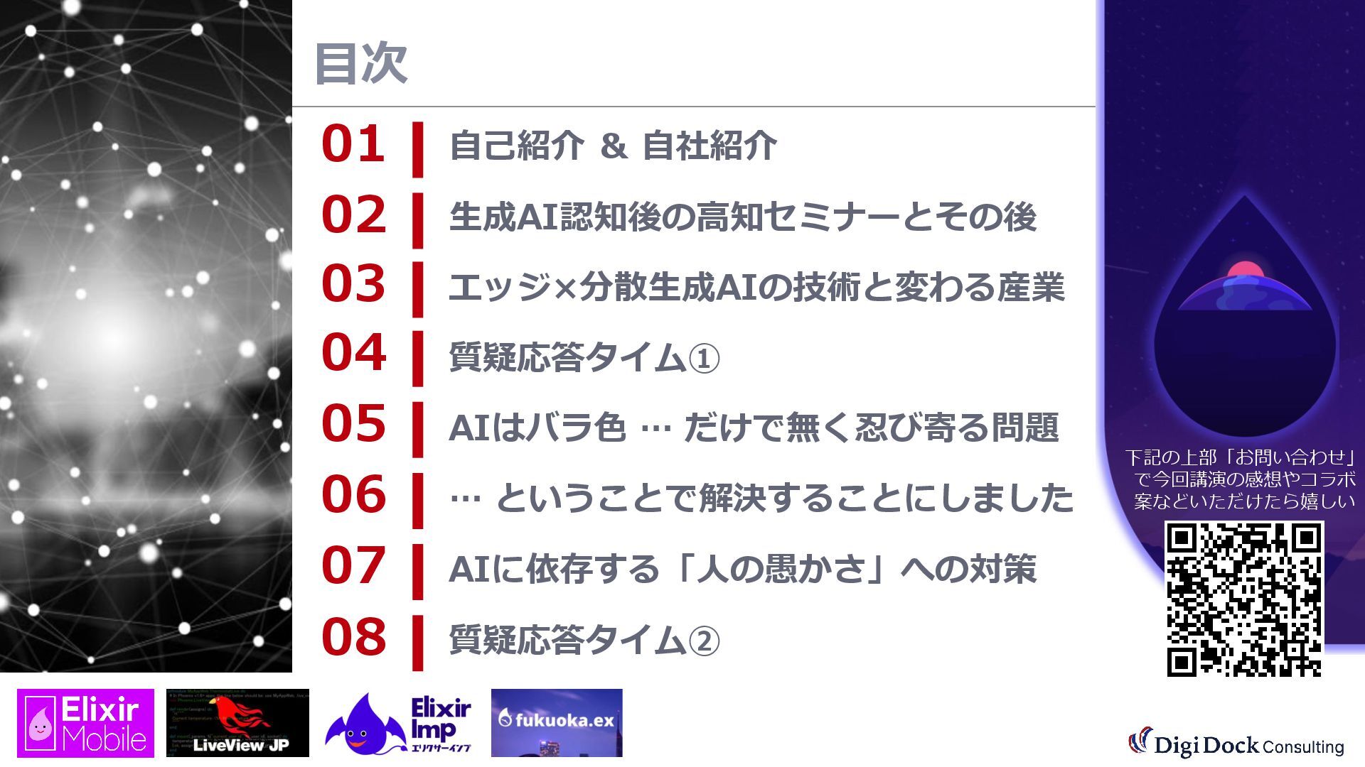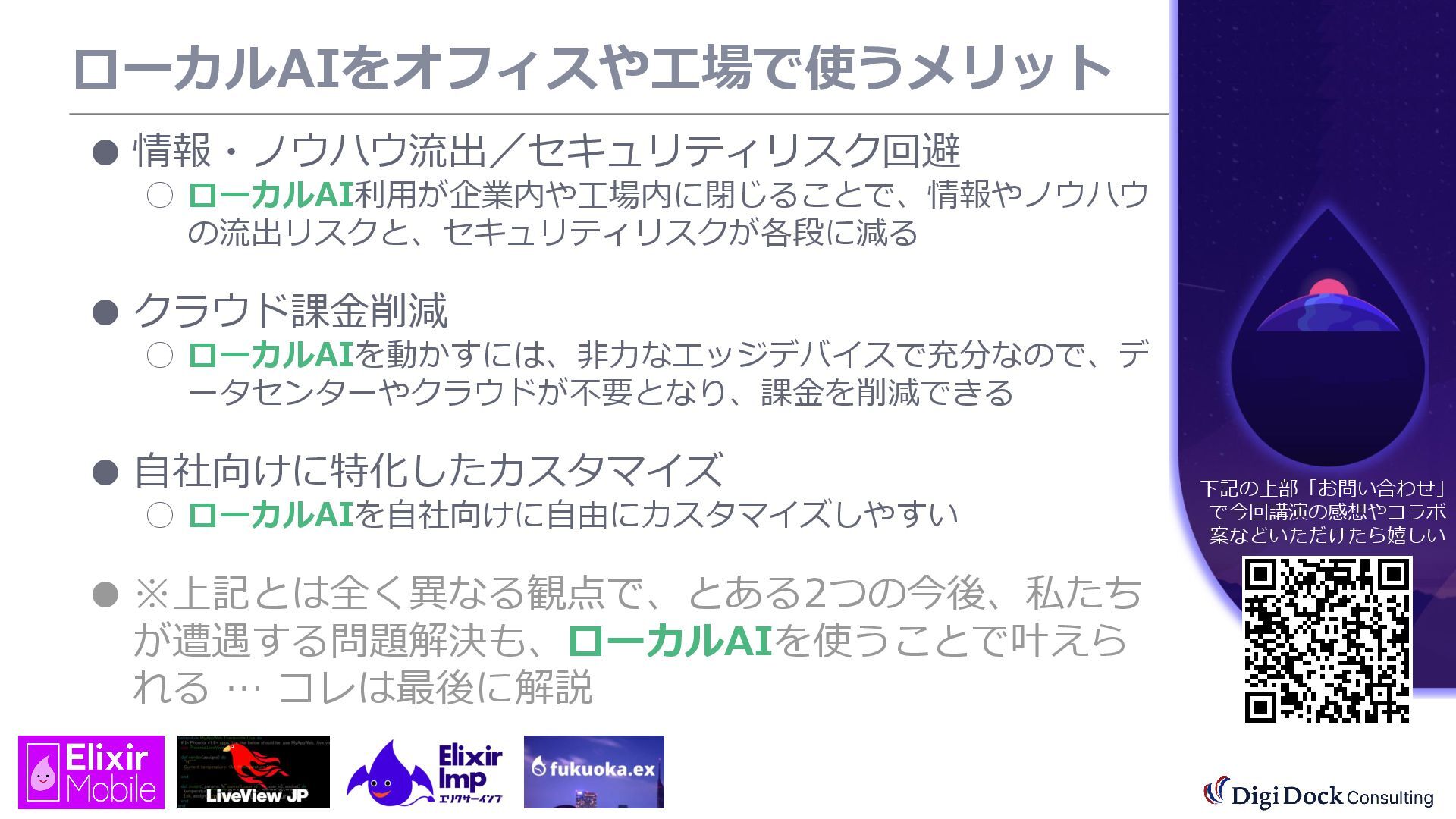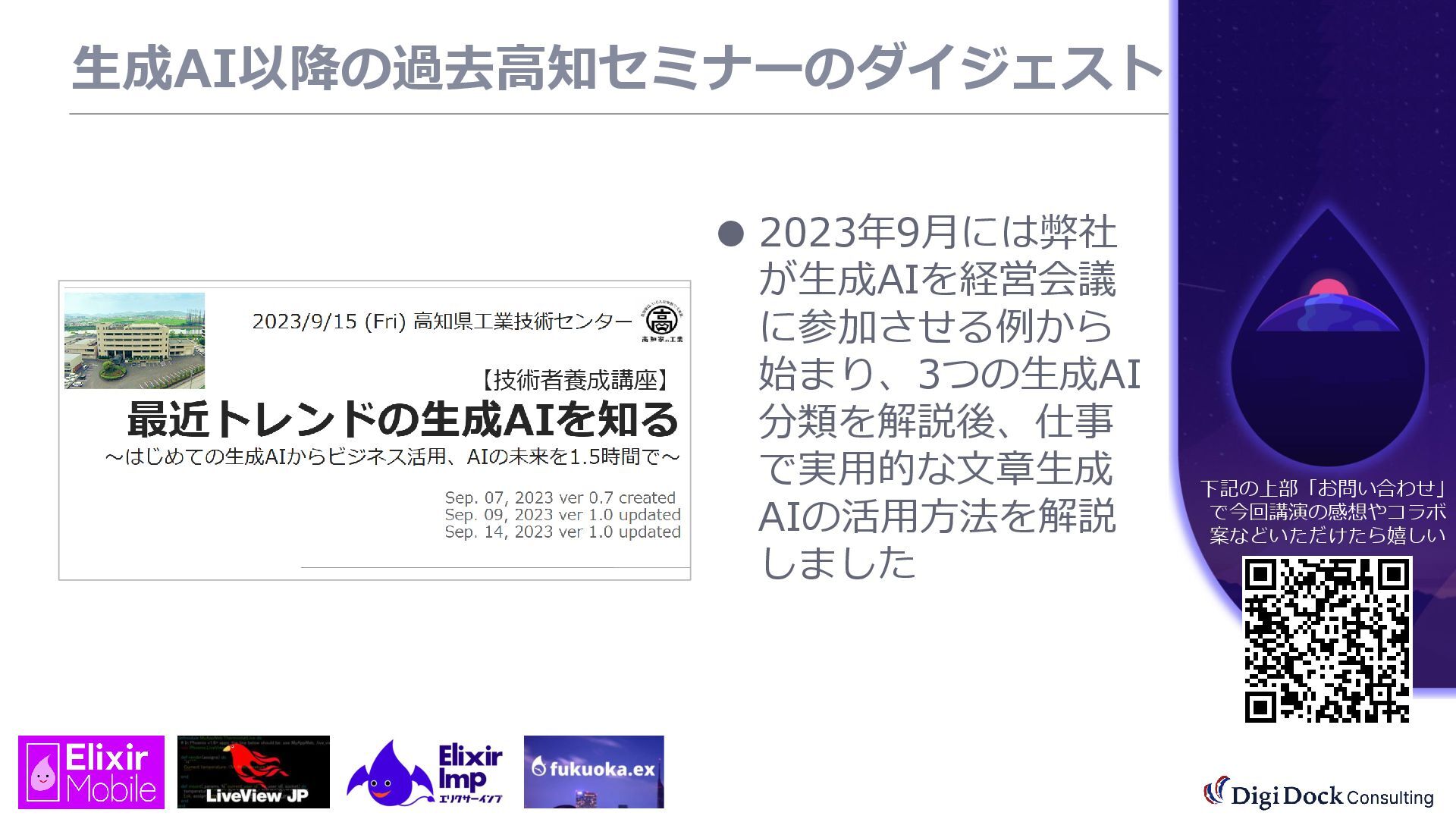 ver 0.1 created. Oct. 19, 2025 ver 0.5 updated Oct. 26, 2025 ver 0.7 updated Nov. 01, 2025 ver 0.8 updated Nov. 02, 2025 ver 0.9 updated Nov. 03, 2025 ver 1.0 updated Dec. 13, 2025 ver 1.5 updated Dec. 17, 2025 ver 2.0 updated 株式会社DigiDockConsulting 常務取締役CETOほか5社CxO Elixirコミュニティ「fukuoka.ex」「ElixirImp」「LiveView JP」オーガナイザ 国際カンファレンス「ElixirConf JP」ファウンダー 北九州市立大学 「プログラミング論」教授級非常勤講師 北九州高等専門学校 特命教授 / コンピュータ研究部 指導員 AIスクール「AIジョブカレ」福岡校開校講師 piacere / 森 正和 2025.12.19 Fri. 【スマートものづくり研究会】AIセミナー