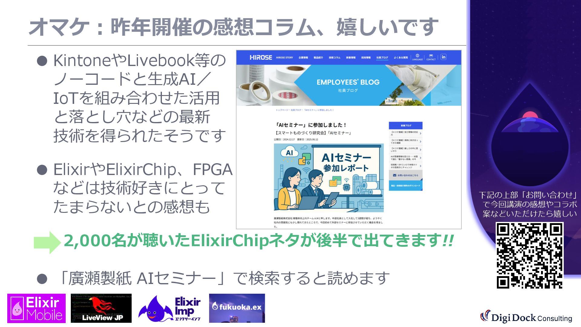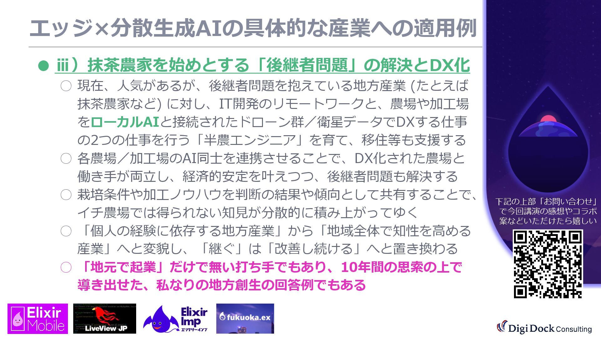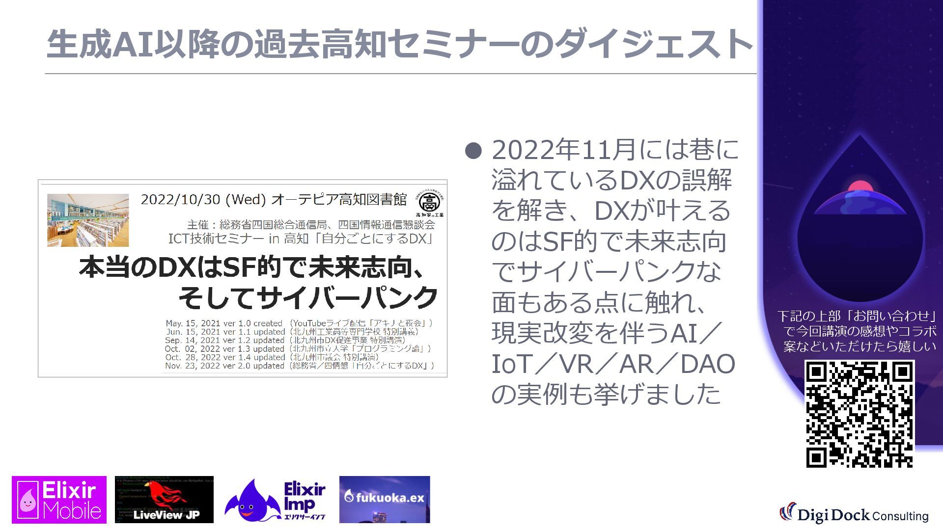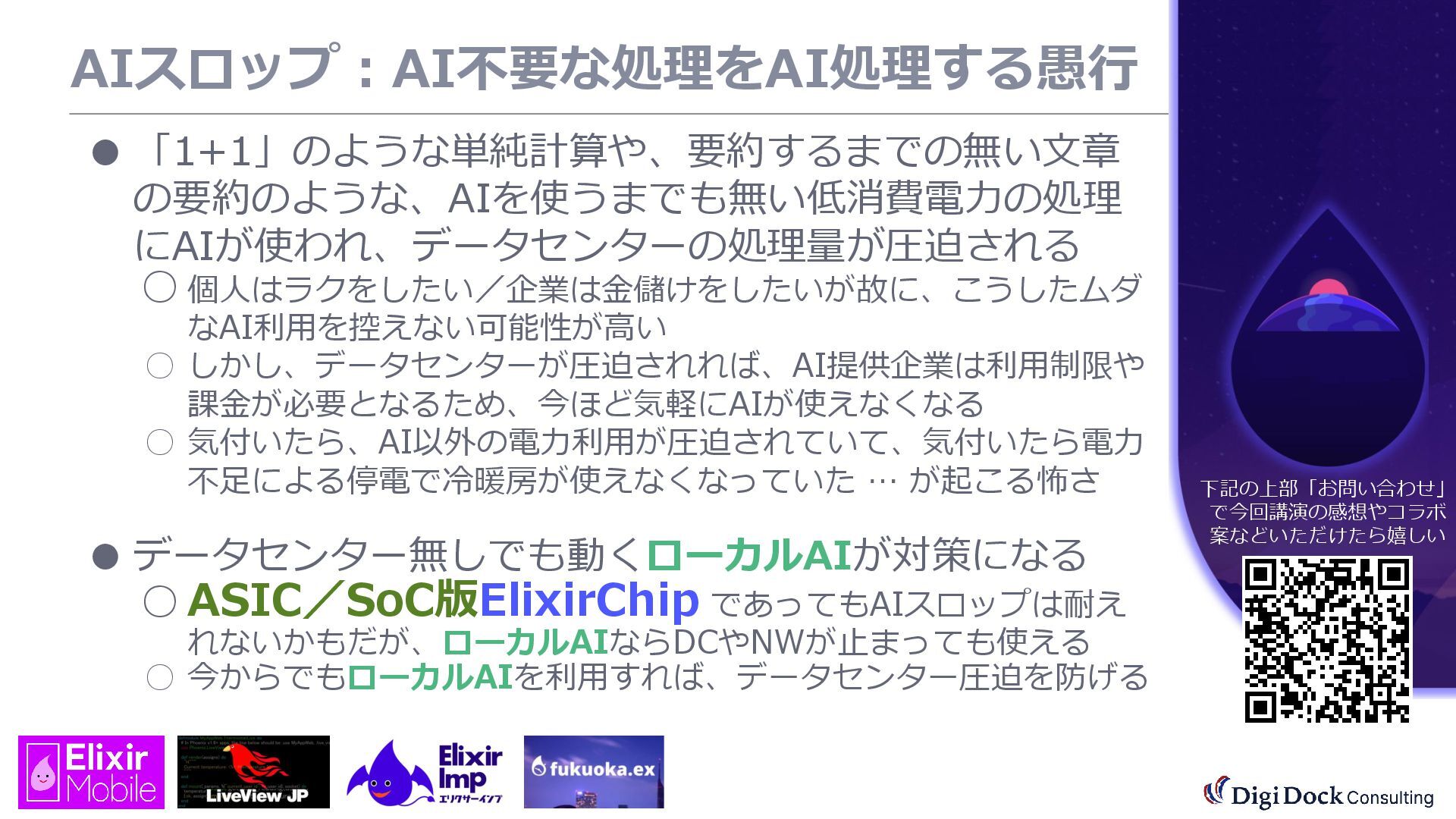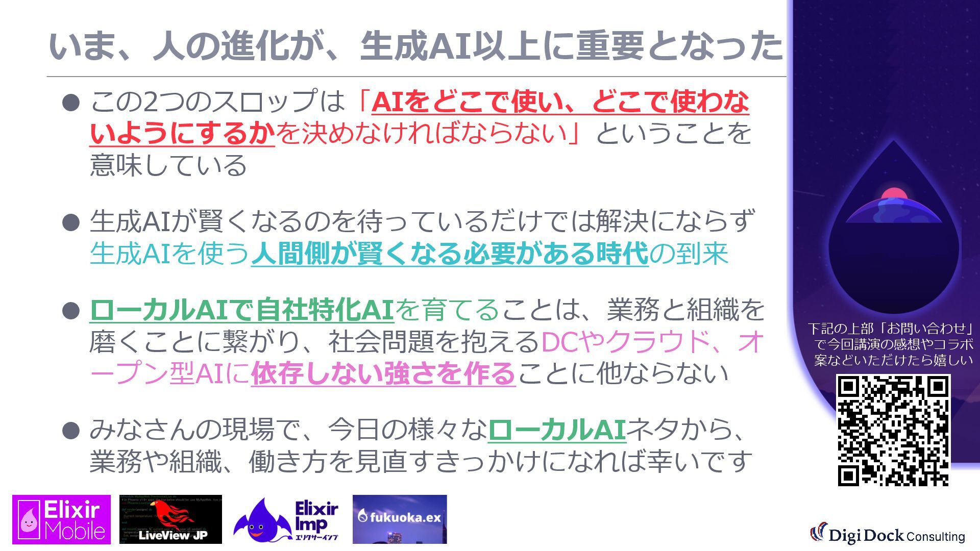 ver 0.1 created. Oct. 19, 2025 ver 0.5 updated Oct. 26, 2025 ver 0.7 updated Nov. 01, 2025 ver 0.8 updated Nov. 02, 2025 ver 0.9 updated Nov. 03, 2025 ver 1.0 updated Dec. 13, 2025 ver 1.5 updated Dec. 17, 2025 ver 2.0 updated 株式会社DigiDockConsulting 常務取締役CETOほか5社CxO Elixirコミュニティ「fukuoka.ex」「ElixirImp」「LiveView JP」オーガナイザ 国際カンファレンス「ElixirConf JP」ファウンダー 北九州市立大学 「プログラミング論」教授級非常勤講師 北九州高等専門学校 特命教授 / コンピュータ研究部 指導員 AIスクール「AIジョブカレ」福岡校開校講師 piacere / 森 正和 2025.12.19 Fri. 【スマートものづくり研究会】AIセミナー