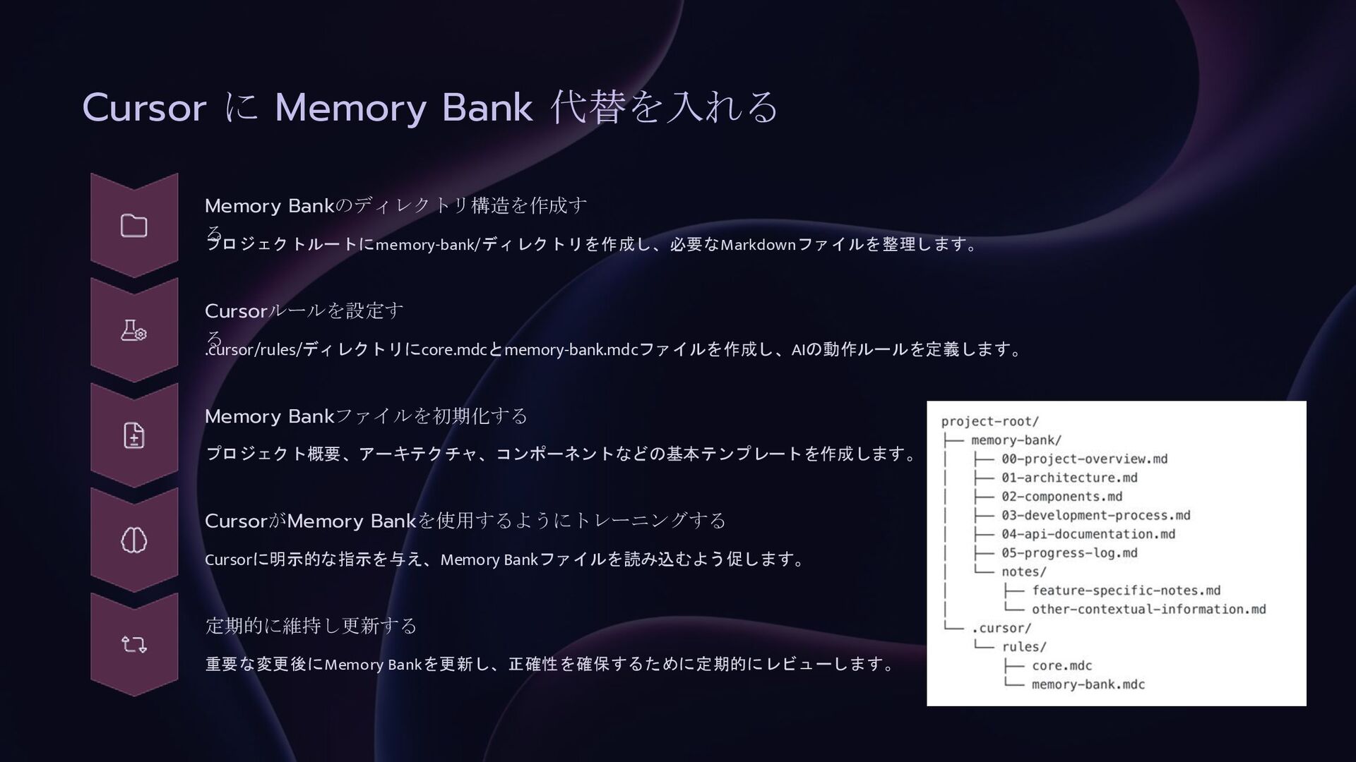 Cursorで重要コンテキストを 保持してコーディングする 〜 Memory Bank 実装をするときの改善Tips 〜
