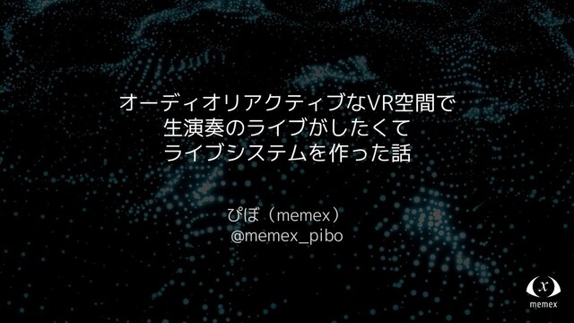 オーディオリアクティブなVR空間で 生演奏のライブがしたくて ライブシステムを作った話 ぴぼ(memex) @memex_pibo