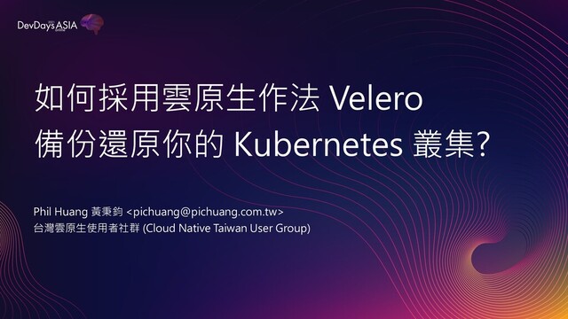 如何採用雲原生作法 Velero 備份還原你的 Kubernetes 叢集? Phil Huang 黃秉鈞 <