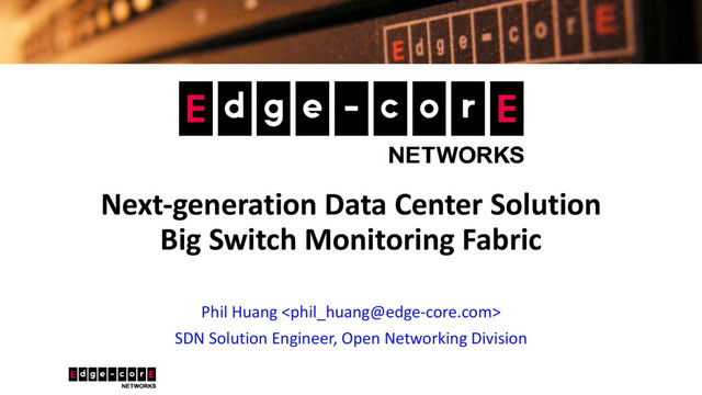 www.edge-core.com Phil Huang § Edgecore SDN Solution Engineer § Big Switch Networks § Cumulus Linux § Pica8 § OF-DPA & Open Network Linux § ONOS/CORD Ambassador § blog.pichuang.com.tw