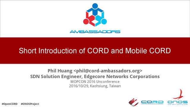 ONOS and/or CORD • Promote either project in their region • Build strong local community 13 What is ONOS / CORD Ambassador Program Please feel free to ask. ONOS/CORD Ambassadors Team in Taiwan will be happy to discuss with you Charles Chan [email protected] Phil Huang [email protected] Chun-Ming Ou [email protected] Yi Tseng [email protected]