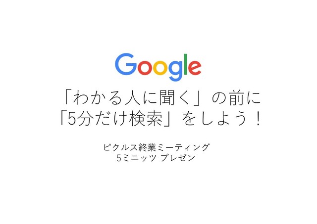 「わかる⼈に聞く」の前に 「5分だけ検索」をしよう! ピクルス終業ミーティング 5ミニッツ プレゼン