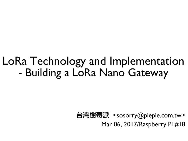這次分享包含: 1. LoRaWAN 與 LoRa 介紹。 2. 如何設計 LoRa 通訊協定。 3. 實做與展示。
