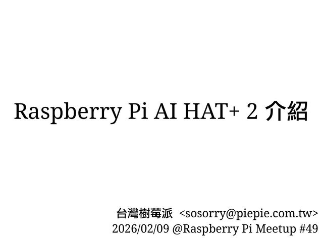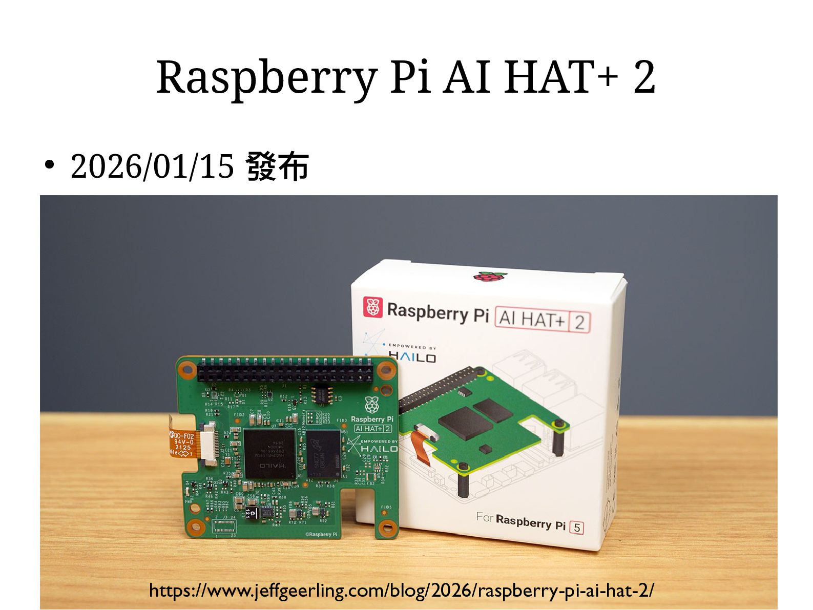 這是我們在 樹莓派社群聚會 #49 的分享,介紹 Raspberry Pi AI HAT+ 2 。