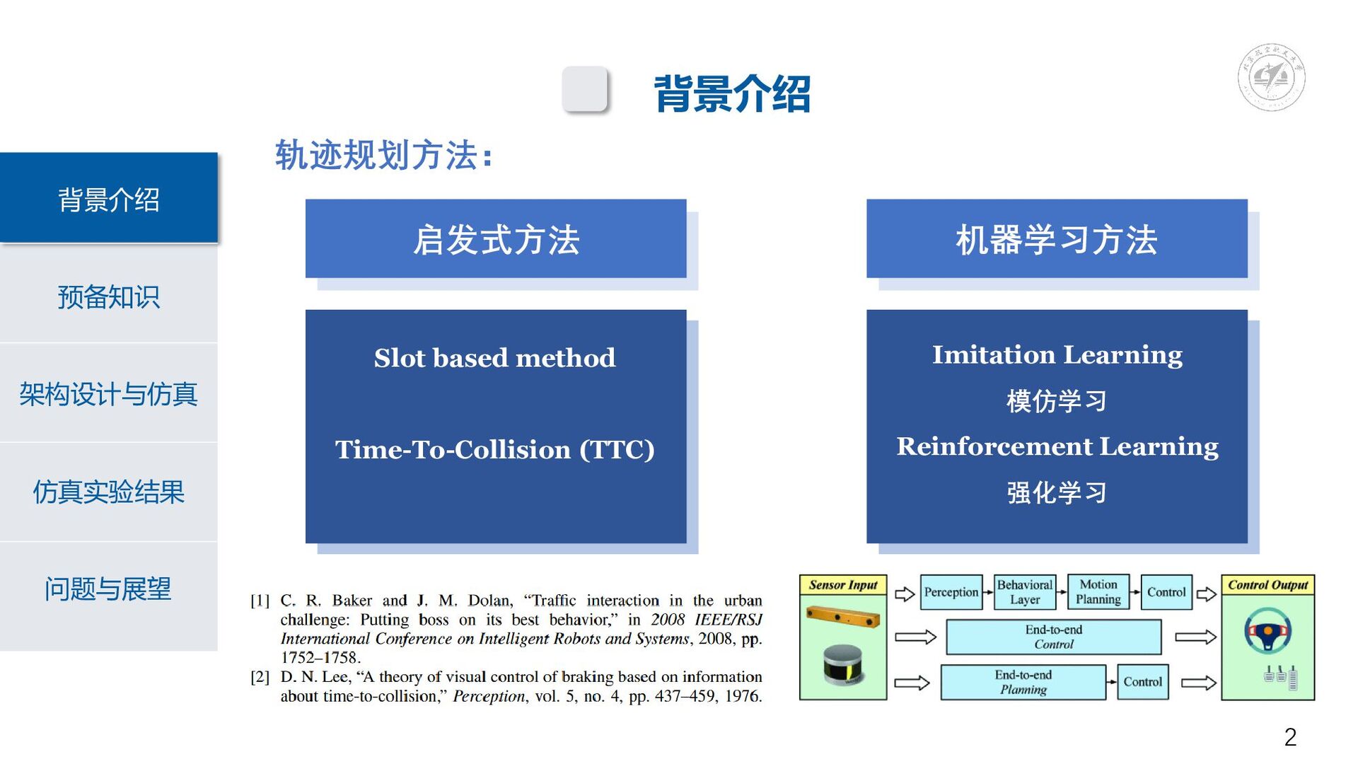 method Time-To-Collision (TTC) Imitation Learning 模仿学习 Reinforcement Learning 强化学习 启发式方法 启发式方法 机器学习方法 2