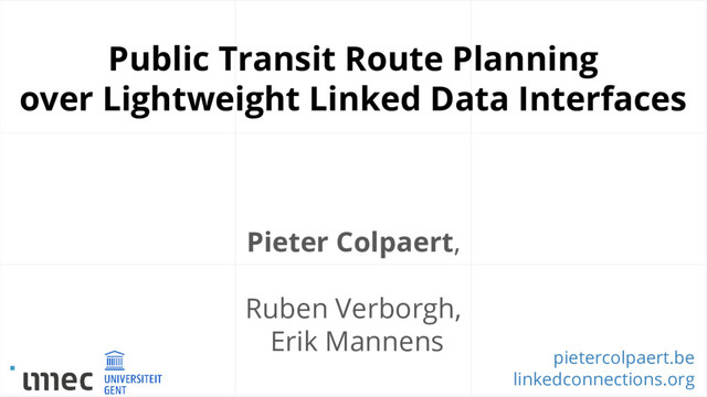 reuse of public transport data Data dumps Linked Connections Answer any question on the server Route planning algorithms as a service Data publishing Data services http://api.{myapp}/?from={A}&to={B} http://{myhost}/{datafragmentid} Average cache hit-rate of 78%