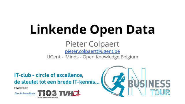 8 { “iMinds” : { “type” : “Bedrijf”, “same as” : “IBBT, “vestiging” : “Gaston Crommenlaan 8” } } <iMinds> <type>Bedrijf</type> <sameas>IBBT</sameas> <vestiging> Gaston Crommenlaan 8 </vestiging> </iMinds> <iMinds> <type> <Bedrijf> . <iMinds> <sameas> <IBBT> . <iMinds> <vestiging> “Gaston Crommenlaan 8” . Table / CSV / Spreadsheet JSON XML triples Triple structuur