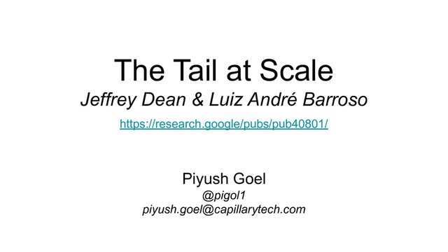 -- especially with the Cloud Era! • Develop tail-tolerant techniques that mask or work around temporary latency pathologies, instead of trying to eliminate them altogether. • Classes of Tail Tolerant Techniques ◦ Within Request // Immediate Response Adaptations ▪ Focus on reducing variations within a single request path. ▪ Time Scale - 10ms ◦ Cross Request Long Term Adaptations ▪ Focus on holistic measures to reduce the tail at the system level. ▪ Time Scale - 10 seconds and above.