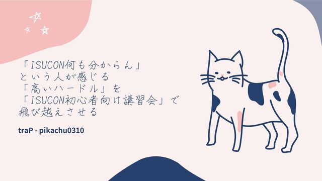 「ISUCON何も分からん」 という人が感じる 「高いハードル」を 「ISUCON初心者向け講習会」で 飛び越えさせる traP - pikachu0310