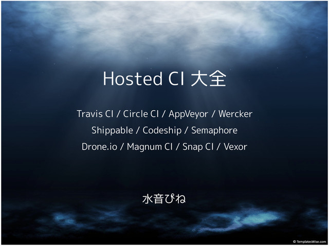 / Wercker Shippable / Codeship / Semaphore Drone.io / Magnum CI / Snap CI / Vexor 水音ぴね