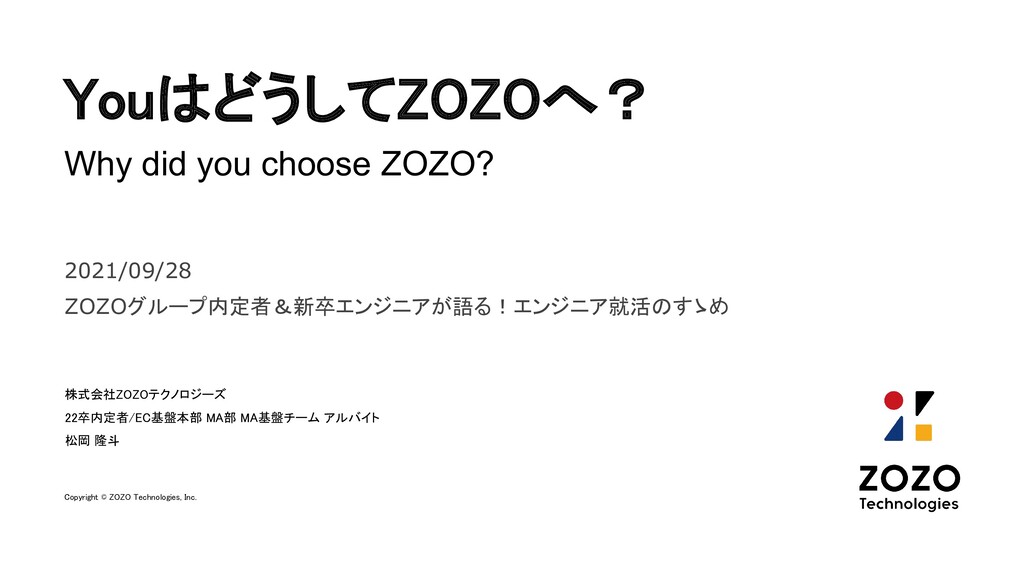 株式会社ZOZOテクノロジーズ 22卒内定者/EC基盤本部 MA部 MA基盤チーム アルバイト 松岡 隆斗 Copyright © ZOZO Technologies, Inc.