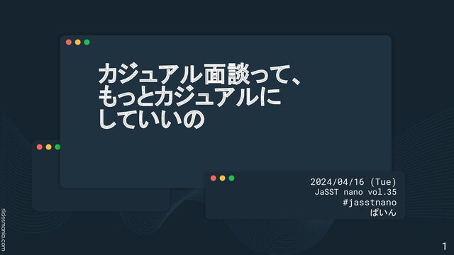 カジュアル面談って、 もっとカジュアルに していいの 2024/04/16 (Tue) JaSST nano vol.35 #jasstnano ぱいん