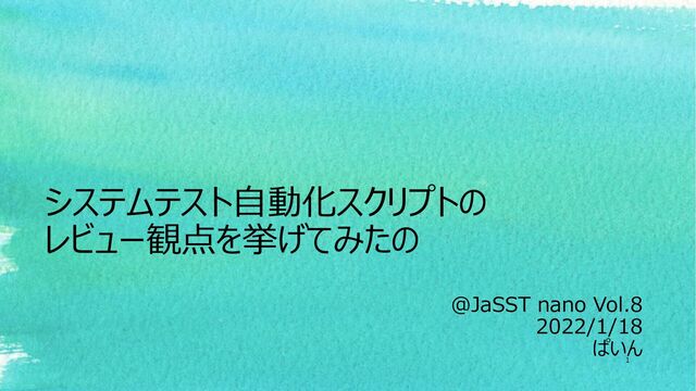 システムテスト自動化スクリプトの レビュー観点を挙げてみたの @JaSST nano Vol.8 2022/1/18 ぱいん 1