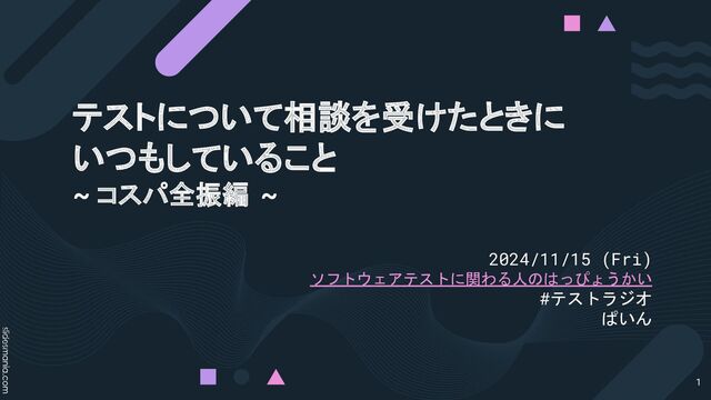 テストについて相談を受けたときに いつもしていること ~ コスパ全振編 ~ 2024/11/15 (Fri) ソフトウェアテストに関わる人のはっぴょうかい #テストラジオ ぱいん