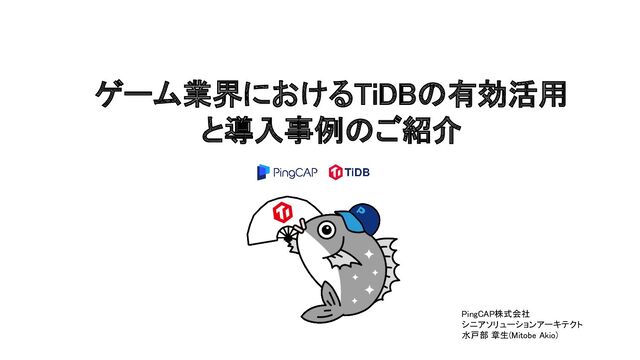 ◦ Balances the distribution of region leaders データの偏りを調整 balance-region-scheduler ◦ Balances the distribution of region peers 高負荷なデータを調整 hot-region-scheduler ◦ Balances the distribution of hot regions アップグレード時にデータを退避 evict-leader-scheduler ◦ Evicts all leaders of a node (often used for rolling upgrades) TiDB TiDB TiKV Cluster (Storage) Meta data TiKV TiKV TiKV MySQL プロトコル TiKV TiDB TSO/Data location TiDB Cluster TiDB ... ... P D P D P D PD Cluster TiKV TiKV TiDB 今まで手動でやっていた事を自動化 PDが司令塔として活躍 TiDBで何を解決するのか For Game