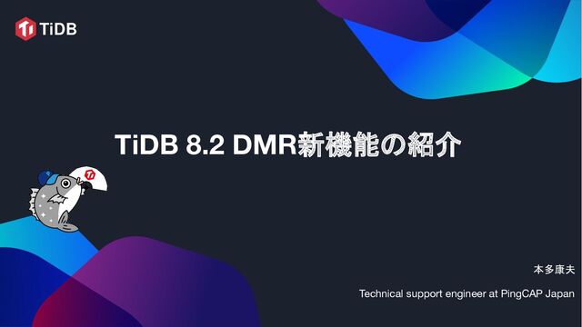 このスライドでは、MySQL互換の分散型データベースTiDB 8.2 DMRの新機能について紹介します。