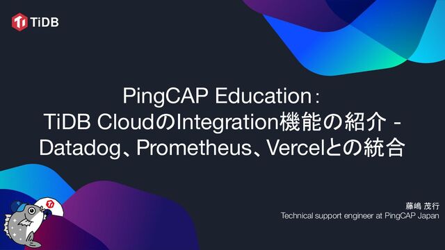 このスライドでは、分散データベースのTiDB Cloudが提供するサードパーティのサービスやOSSとの統合について紹介します。TiDB Cloudが提供する統合機能では、モダンなモニタリングサービスを提供するDatadog、OSSの監視ツールとして代表的な存在であるPrometheus、フロントエンド開発者向けの開発プラットフォームであるVercelと容易に連携させることができます。本スライドでは、各サービスや製品との連携方法についてデモを交えながら解説し、TiDB Cloudが既存のエコシステムと高い親和性を持っていることを紹介します。