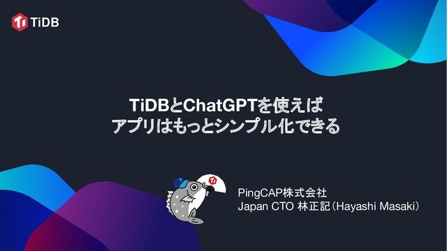このスライドはこのサービスの裏側で使われている技術のキモであるデータベース機能のHTAP、Chat2Query(ChatGPTベースのクエリ生成機能)がどのようにアプリケーション開発をシンプル化・高度化できるかを紹介します。