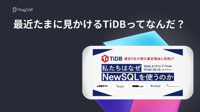 ファインディ社による2024年4月17日開催のイベント「私たちはなぜNewSQLを使うのかTiDB選定5社が語る選定理由と活用LT」でTiDBの紹介をしました。