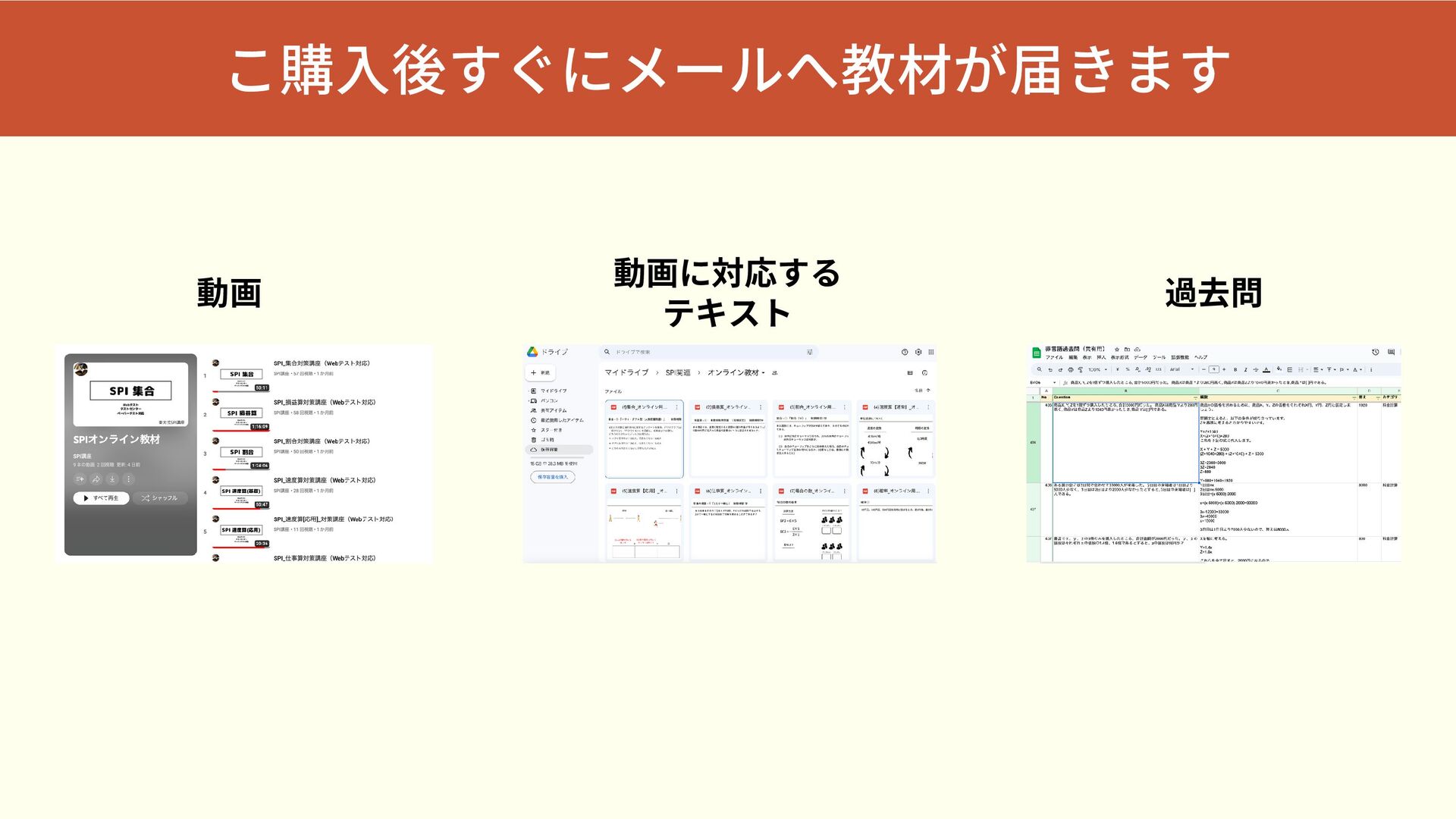 こ購入後すぐにメールへ教材が届きます 過去問 動画に対応する テキスト 動画