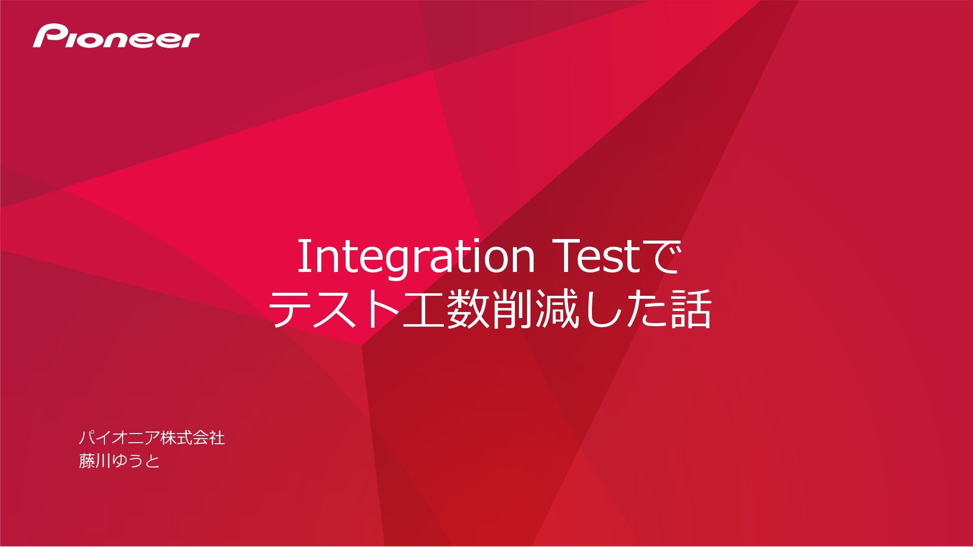 Integration Testで テスト⼯数削減した話 パイオニア株式会社 藤川ゆうと