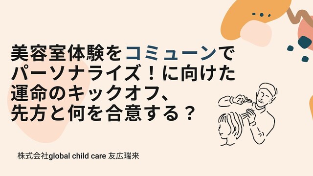 美容室体験を で パーソナライズ!に向けた 運命のキックオフ、 先方と何を合意する? コミューン 株式会社global child care 友広瑞来