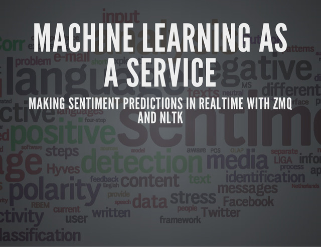 I am a Machine Learning (ML) and Natural Language Processing enthusiast. For my university dissertation I created a realtime sentiment analysis classifier for Twitter. My talk will be about the experience and the lessons learned. I will explain how to build a scalable machine learning software as a service, consumable with a REST API. The purpose of this talk is not to dig into the mathematics behind machine learning (as I do not have this experience), but it’s more about showing how easy it can be to build a ML SaaS by using some of the amazing libraries such as NLTK, ZMQ and MrJob that have helped me make throughout the development. This talk will give several benefits: users with no ML background will have a great introduction to the subject, they will also be able to replicate my project at home. More experienced users will gain new ideas to put in practice and (most) probably build a better system than mine! Finally, I will attach a GitHub project with the slides and a finished product.