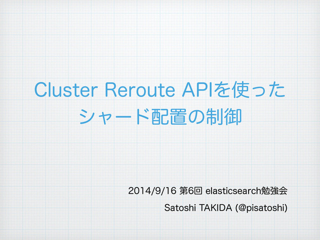 $MVTUFS3FSPVUF"1*Λͬͨ γϟʔυஔͷ੍ޚ ୈճFMBTUJDTFBSDIษڧձ 4BUPTIJ5",*%" !QJTBUPTIJ