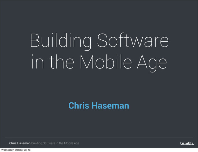 Working in the mobile industry for the last ten years has taught me one thing: Producing great software is hard. There are, however, more than a few ways to make it easier and more accessible. Over the course of this talk I'd like to go over some of the small things you can do to make the process less daunting. I'll give developers some guidelines on fighting and getting releases out on time. We'll talk about how to get the most out of designers (and how designers can get the most out of engineers). Last, I'll let the marketing folks in on a few tactics we've used at Tumblr to get our rating above 4 stars.