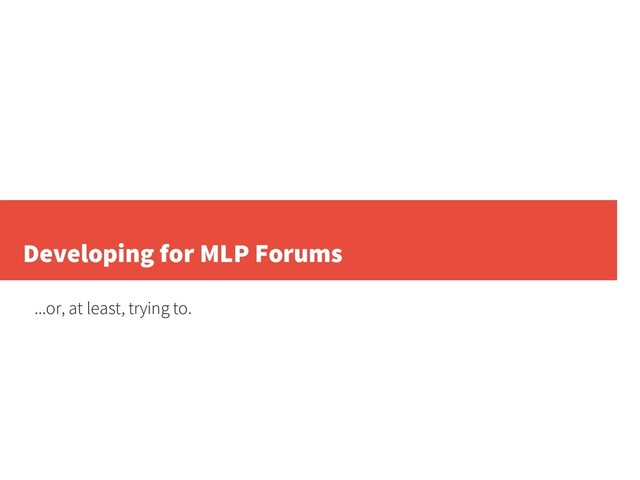 We've got a vanilla installation of IP.Board. - Install the addons, we can load the DB up with some data and we're good right? - Wrong. - Install the MLPF-tweaked PHP files, and we're good right? - Wrong. - But not tooo wrong... - On to the next problem!
