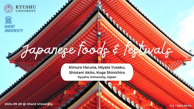 Shinichiro / From Kyushu University, Japan Designed by Yusaku Miyata Quotes Tokyo The 3 greatest edo fes: https://www.3maturi.com/sandaimatsuri/edo3d/ Oden / MAFF : htps://www.maff.go.jp/j/keikaku/syokubunka/k_ryouri/search_menu/menu/34_5_tokyo.html Edomae sushi / Toyo Sushi Academy: https://www.sushiacademy.co.jp/archives/c351 Osaka Takoyaki / Japan Ready-made Meal Assoc. https://www.nsouzai-kyoukai.or.jp/takoyaki-octopus-balls/ Okonomiyaki / MAFF: https://www.maff.go.jp/j/keikaku/syokubunka/k_ryouri/search_menu/menu/39_20_osaka.html Fukuoka Fukuoka Gion Yamakasa: https://www.FUKUOKAyamakasa.com/ Motsunabe Kouzuki: https://www.FUKUOKA-kozuki.com/kyodoryori/motsunabe/ The presentation design and compositions except the informations and images on this material is copyrighted by the above authors. 26