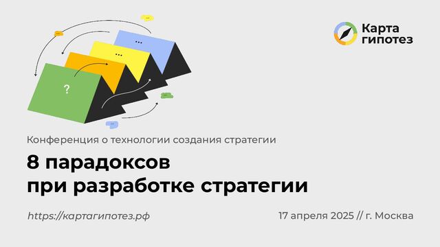 Разработка стратегии — это баланс между крайностями. Мы часто сталкиваемся с парадоксами, которые мешают нам принимать решения и двигаться вперед. В этом докладе мы разберем 8 ключевых стратегических парадоксов и найдем решения с помощью метода Карта гипотез.