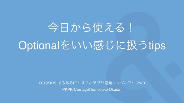 ࠓ͔Β͑Δʂ OptionalΛ͍͍ײ͡ʹѻ͏tips 2019/3/19 ͋Δ͋ΔLTʙεϚϗΞϓϦ։ൃΤϯδχΞʙ Vol.3 PKPK-Carnage(Tomosuke Okada)